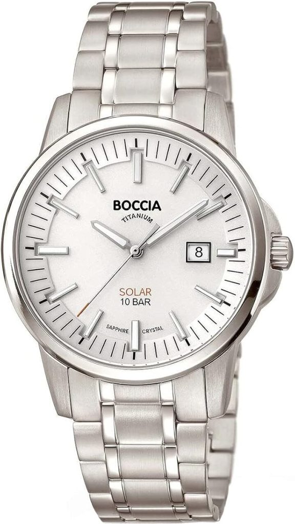 Die solarbetriebene Designer Uhr BOCCIA Titanium 3643-03 für Herren ist ideal für Menschen, die leichte, wartungsarme Uhren bevorzugen. Wer jedoch sehr große oder schwere Uhren mit massivem Erscheinungsbild sucht, könnte das Modell als zu dezent empfinden. Auch Liebhaber mechanischer Uhrwerke bevorzugen möglicherweise Automatikuhren.