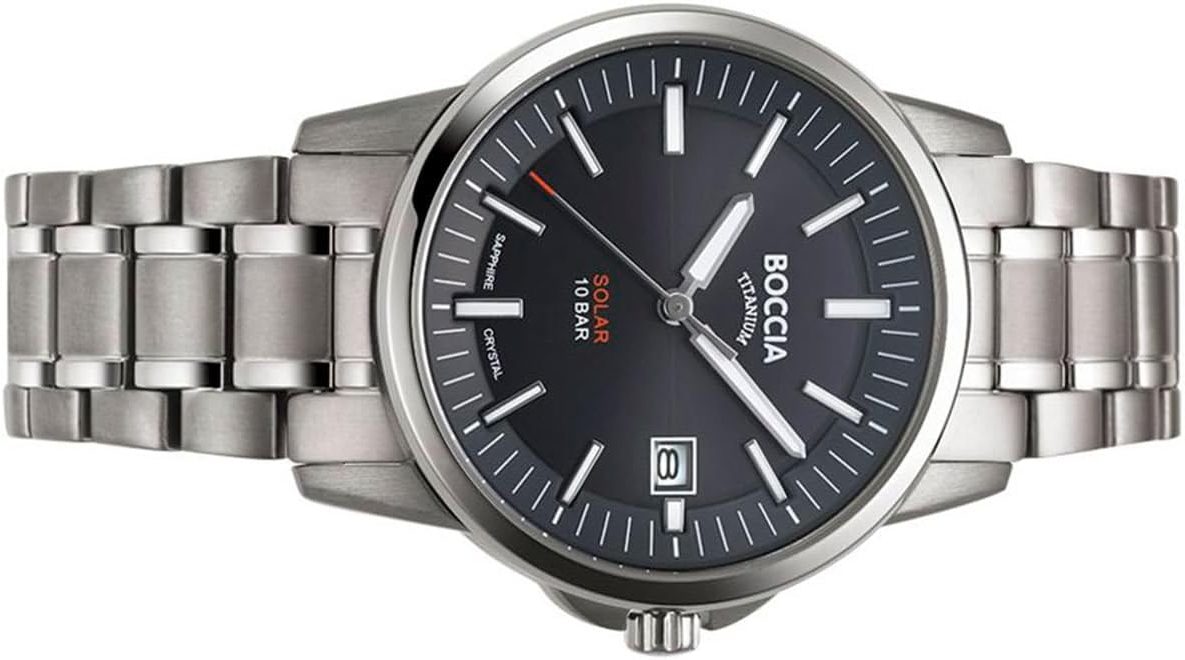 Die solarbetriebene Designer Uhr BOCCIA Titanium 3643-03 für Herren vereint Leichtigkeit, Technologie, Design, Wasserdichtigkeit und Preis-Leistungs-Stärke. Genau diese Kombination macht sie für viele Interessenten besonders attraktiv.