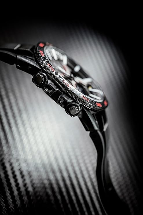 Diese Uhr ist nicht nur ein Accessoire, sondern eine Hommage an Geschwindigkeit und Innovation. Wer Motorsport liebt, wird die Details dieser Uhr zu schätzen wissen: das leichte Karbon, die ergonomische Gehäuseform, das matte Schwarz mit metallischen Akzenten – jedes Element spiegelt Dynamik und Präzision wider.