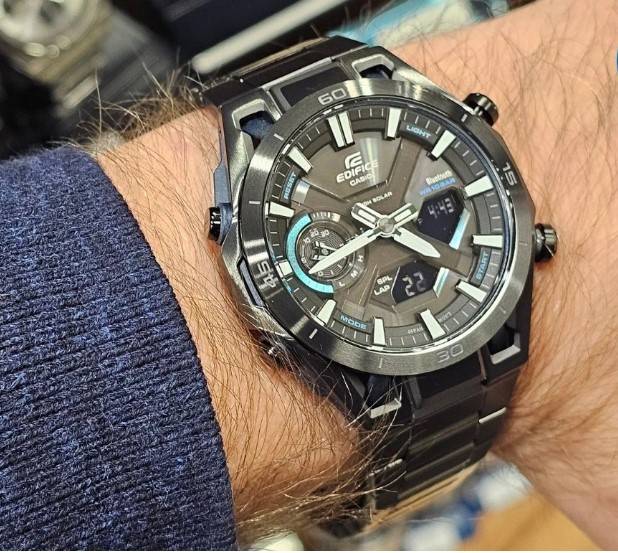 A. Super Illuminator und Neobrite im Praxistest der solarbetriebenen Designer Uhr Casio EDIFICE SOSPENSIONE ECB-2300DC-1AEF für Herren