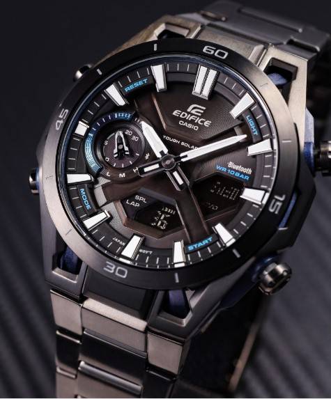 Die solarbetriebene Designer Uhr Casio EDIFICE SOSPENSIONE ECB-2300DC-1AEF für Herren ist mit der Bluetooth®-Mobile-Link-Technologie ausgestattet, die eine kabellose Verbindung zum Smartphone ermöglicht. Nach der Kopplung synchronisiert sich die Uhr automatisch mit der exakten Zeit Ihres Mobilgeräts. Damit entfällt jede manuelle Korrektur – unabhängig von Standort oder Zeitzone.