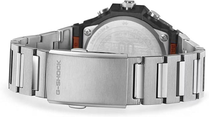 Das massive Edelstahlarmband der Casio G-SHOCK G-Steel GST-B1000D-1AER trägt maßgeblich zum hochwertigen Tragegefühl bei. Mit einer Bandbreite von 20 Millimetern und einer Bandlänge von 20,5 Zentimetern ist es für Handgelenkumfänge von 150 bis 205 Millimetern ausgelegt. Die Kombination aus Spiegelfinish und Hairline-Politur sorgt nicht nur für eine edle Optik, sondern auch für eine angenehme Haptik.