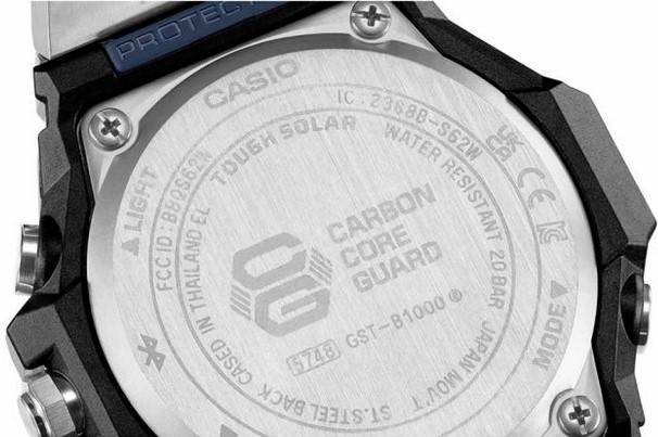 Dank Carbon Core Guard, Edelstahl-Lünette und 20 bar Wasserdichtigkeit ist die solarbetriebene Designer Uhr Casio G-SHOCK G-Steel GST-B1000D-1AER für Herren extrem widerstandsfähig.