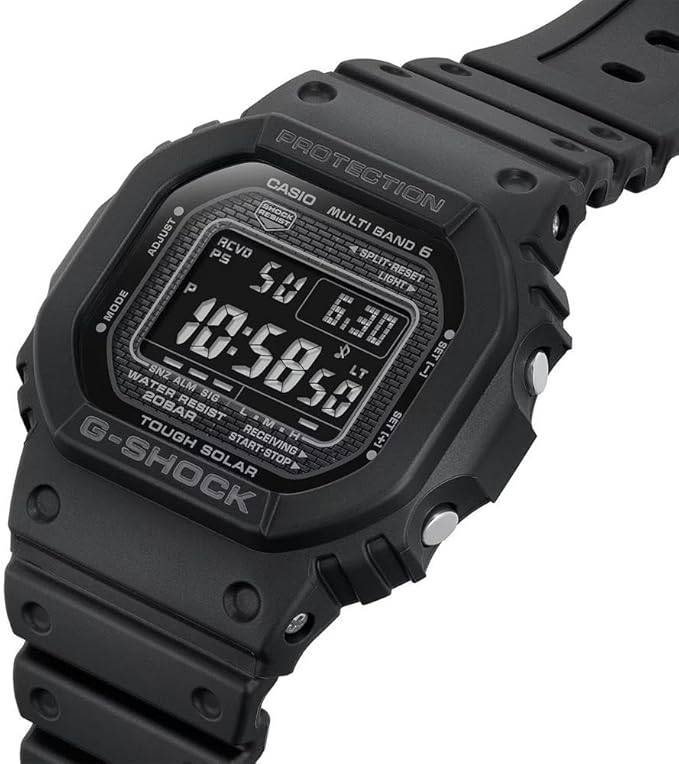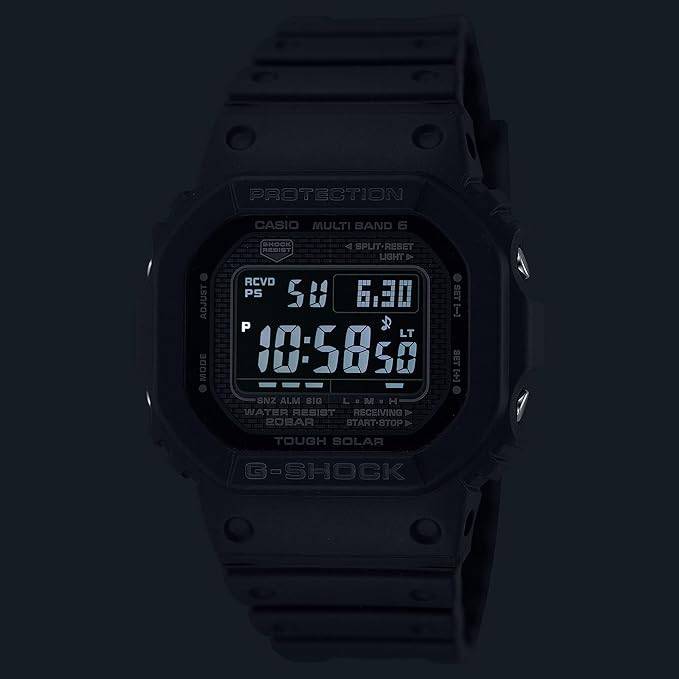 Ein zentrales Leistungsmerkmal der Casio G-Shock GW-5000HS-1ER ist die Multiband-6-Funktechnologie. Die Uhr empfängt automatisch Zeitsignale aus Deutschland (DCF77), Großbritannien (MSF), den USA (WWVB), Japan (JJY) und China (BPC). Bis zu sechsmal täglich wird die Zeit synchronisiert – vollautomatisch oder manuell abrufbar.