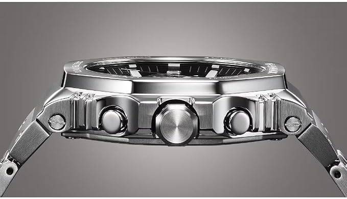 Ein zentrales Qualitätsmerkmal der Casio G-SHOCK Steel Edition GMC-B2100AD-2A ist die hochdichte Montage. Sie ermöglicht es, zahlreiche Funktionen, Bluetooth®-Technologie, Solarladeeinheit und Stoßschutz in einem vergleichsweise flachen Gehäuse zu integrieren. Das Ergebnis ist ein schlankes Profil, das problemlos unter Hemdmanschetten passt und gleichzeitig den typischen G-SHOCK-Charakter bewahrt.