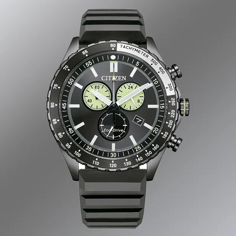 Ein weiteres funktionales Highlight ist der fest integrierte Tachymeter. Er ermöglicht die Berechnung von Geschwindigkeiten über eine definierte Strecke – ein klassisches Feature hochwertiger Sportchronographen. Ob beim Autofahren, Radtraining oder zur technischen Orientierung: Der Tachymeter erweitert die Einsatzmöglichkeiten der Citizen Eco-Drive AT2565-05E erheblich. Damit positioniert sich die Uhr klar als Instrument für leistungsorientierte Herren, die Technik nicht nur tragen, sondern nutzen wollen.