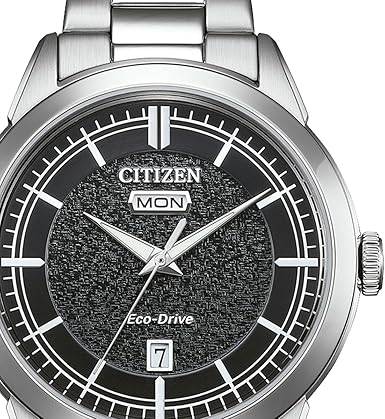 Ein besonderes Highlight der Citizen Eco-Drive AW0151-85EC ist die ungewöhnliche Positionierung der Day-Date-Anzeige. Das Datum befindet sich auf der 6-Uhr-Position, während der Wochentag auf 12 Uhr angezeigt wird. Diese Anordnung schafft Symmetrie und erhöht gleichzeitig den praktischen Nutzen. Im Alltag profitieren Sie von einer schnellen Informationsaufnahme ohne zusätzliche Geräte. Besonders im beruflichen Kontext kann dies hilfreich sein. Gleichzeitig hebt sich die Uhr dadurch visuell von vielen Konkurrenzmodellen ab. Differenzierung ist ein entscheidender Faktor im Premiumsegment – sowohl funktional als auch ästhetisch.