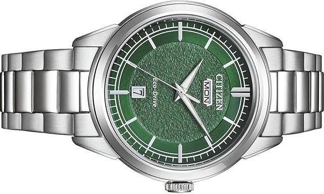 Die Citizen Eco-Drive AW0151-85XC verbindet traditionelle Uhrmacherkunst mit moderner Energietechnologie. Zeitloses Design bedeutet in diesem Kontext eine Gestaltung, die unabhängig von kurzlebigen Trends funktioniert. Das einfarbig grüne Zifferblatt mit klaren Strichindizes sorgt für optimale Ablesbarkeit und eine ästhetisch ruhige Gesamtwirkung. Silberfarbene Elemente harmonieren perfekt mit dem Edelstahlarmband.
