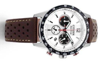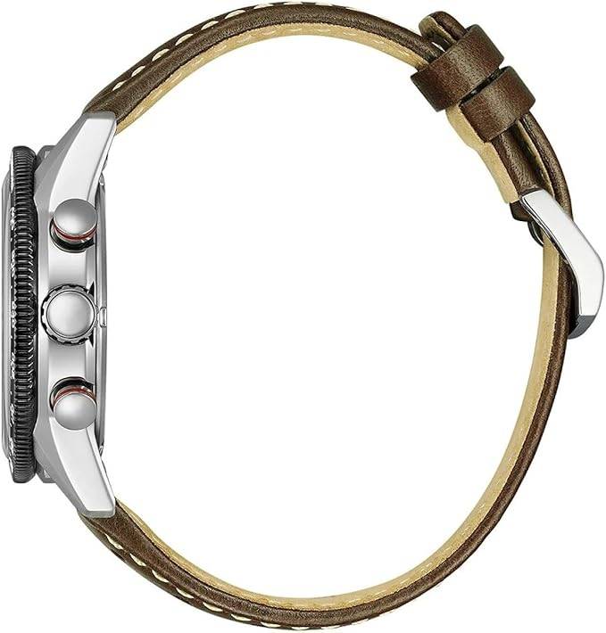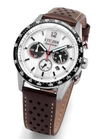 Die solarbetriebene Designer Uhr Citizen Eco-Drive CA4714-04A für Herren positioniert sich klar im hochwertigen Chronographen-Segment für stilbewusste Träger, die technische Substanz und ästhetische Zurückhaltung gleichermaßen schätzen. Als Racing Chronograph verbindet sie sportliche Funktionalität mit einem eleganten Auftritt, der sowohl im Business-Umfeld als auch in der Freizeit überzeugt. Das Edelstahlgehäuse in Silberfarbe, kombiniert mit dem weißen Zifferblatt und dem braunen Lederarmband, vermittelt eine Premium-Anmutung, ohne aufdringlich zu wirken.