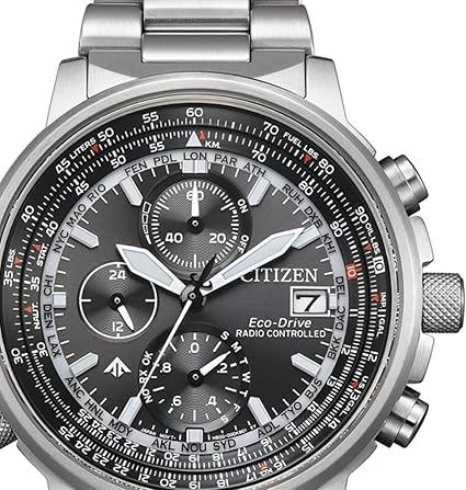 Mit dem Kaliber H800, das in der Citizen Promaster Sky AT8300-58E mit Funk arbeitet, setzt Citizen diese Innovationslinie konsequent fort. Es kombiniert Funksteuerung – also die automatische Synchronisierung mit Atomuhrsignalen in Europa, den USA, Japan und China – mit einer Gangreserve von bis zu 180 Tagen. Damit bleibt die Uhr auch ohne Lichtzufuhr über Monate hinweg aktiv.