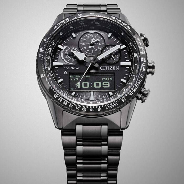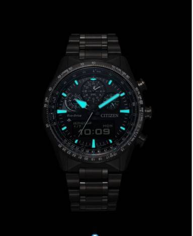 Die Ingenieure von Citizen haben mit der Citizen Promaster Sky JV2005-58E eine Uhr geschaffen, die ihre Funktionalität unabhängig von Umgebungslicht perfektioniert. Dank des MIP-Displays, der LED-Beleuchtung und der Lumineszenztechnologie liefert sie in jeder Situation ein optimales Anzeigeerlebnis.