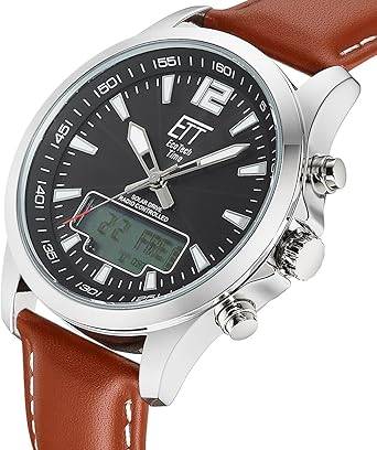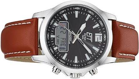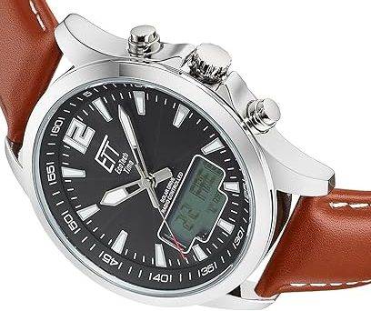 Innerhalb des Marktes moderner Hybriduhren positioniert sich die solarbetriebene Designer Uhr ETT Eco Tech Time Professional EGA-11713-21L für Herren in einem Segment, das nur wenige Hersteller in dieser Vielseitigkeit bedienen: die Kombination aus Funkpräzision, Solarbetrieb und analog-digitaler Anzeige. Während viele Modelle sich entweder auf klassische oder digitale Funktionen stützen, bietet dieses Modell eine Symbiose beider Welten.