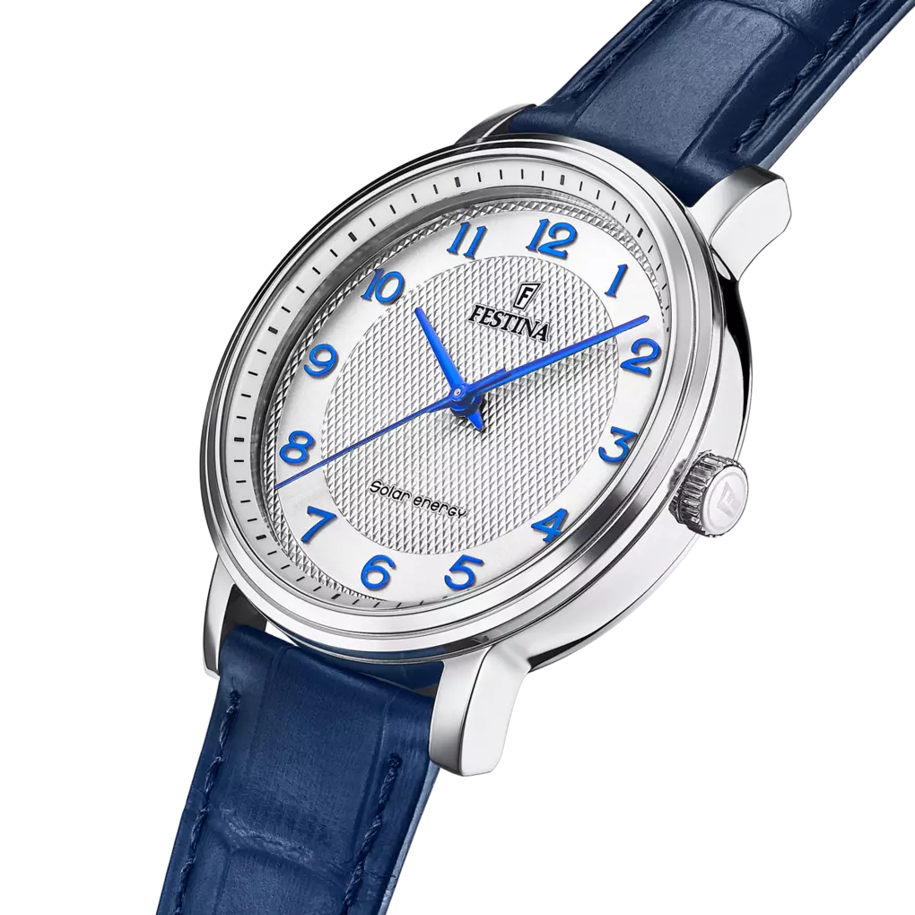 Die Solar Energy Kollektion verbindet innovative Technik mit anspruchsvollem, modernem Design. Die Festina F20660/1 zeichnet sich durch klare Linien, eine ausgewogene Gehäuseform und harmonische Farbkontraste aus. Das silberne Zifferblatt, das blaue Lederarmband und das Edelstahlgehäuse schaffen einen Look, der sowohl klassisch als auch zeitgemäß ist. Diese Designsprache spricht Herren an, die eine Uhr suchen, die sowohl im Berufsalltag als auch bei besonderen Anlässen Eindruck hinterlässt.