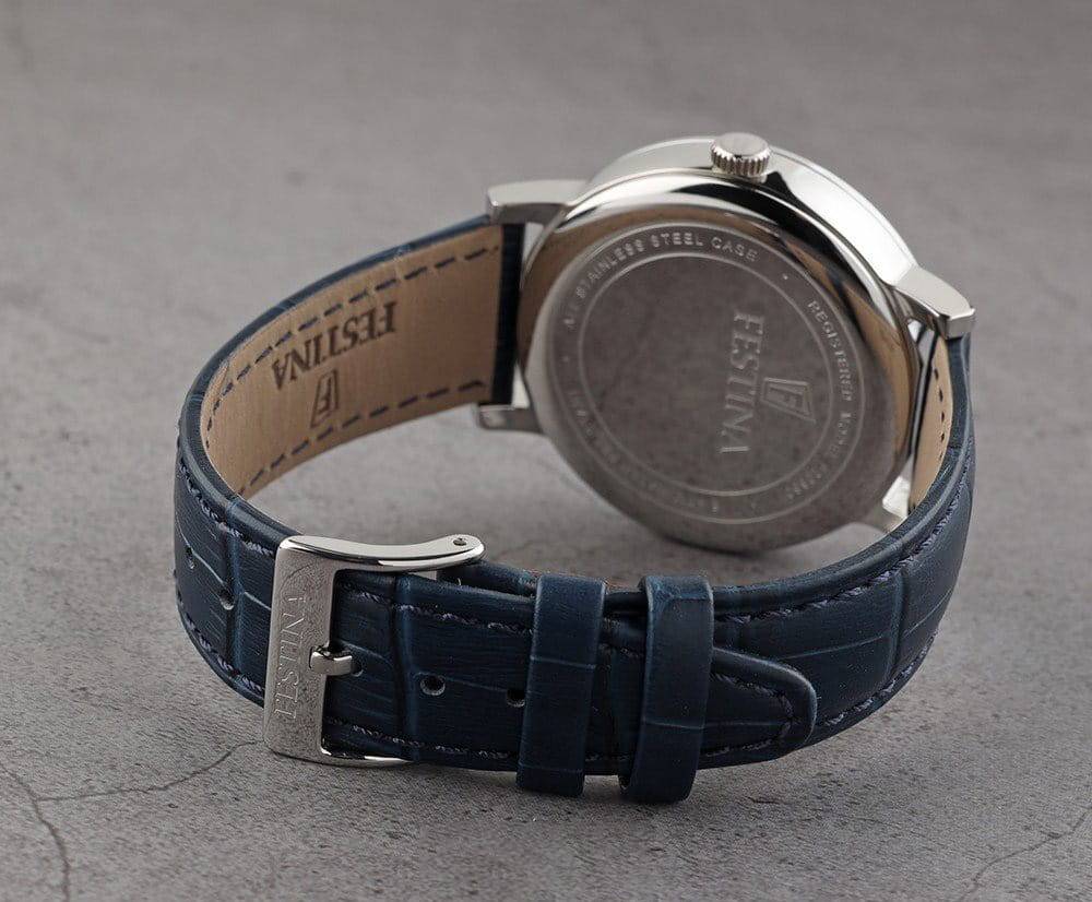 Die Armbandbreite von 20 mm wurde sorgfältig gewählt, um optimalen Tragekomfort und eine harmonische Proportion zum Gehäuse von 41 mm Durchmesser zu gewährleisten. Sie sorgt dafür, dass die Uhr weder zu filigran noch zu wuchtig wirkt, sondern perfekt am Handgelenk sitzt. Die Festina F20660/1 vereint damit ergonomisches Design mit ästhetischer Balance, sodass die Uhr sowohl für schlanke als auch für kräftige Handgelenke geeignet ist.