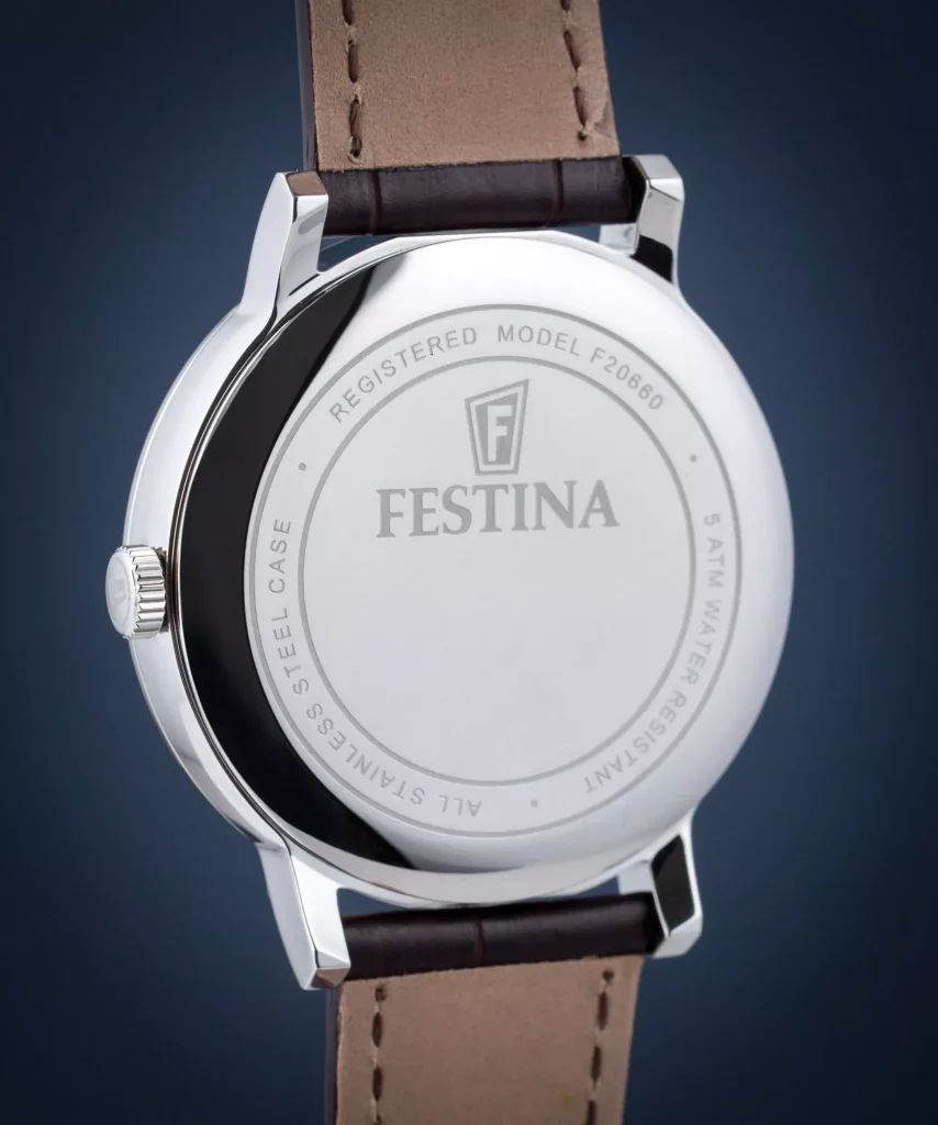 In Kombination mit der ergonomischen Gehäuseform und dem weichen Lederarmband entsteht ein ausgewogenes Tragegefühl. Ob im Büro, auf Reisen oder in der Freizeit: Die Festina F20660/6 bleibt unaufdringlich und zuverlässig präsent.