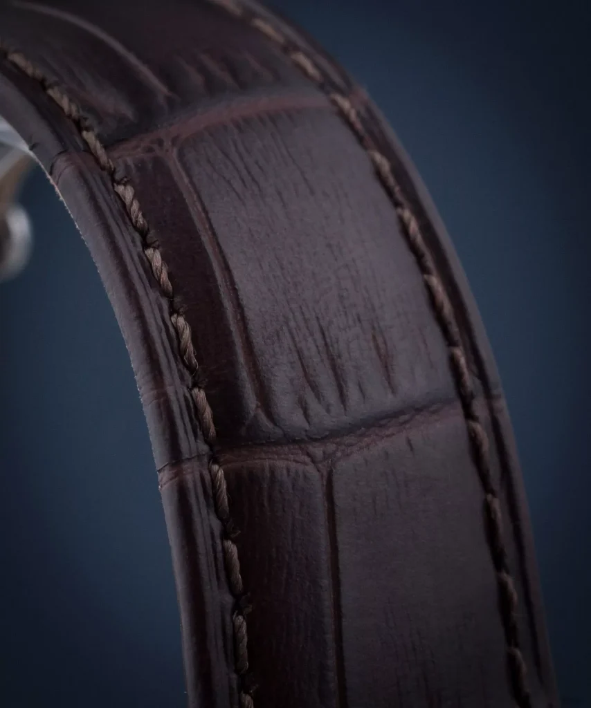 Mit einer Breite von 20 mm und einer klassischen Dornschließe sorgt das Armband für sicheren Halt und ein angenehmes Tragegefühl. Leder entwickelt mit der Zeit eine individuelle Patina – ein Merkmal, das viele Träger bewusst schätzen. Ist es nicht genau diese persönliche Note, die eine Uhr zu mehr als einem reinen Zeitmesser macht?