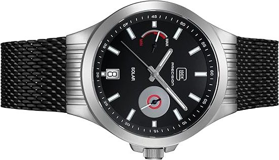 Wer ultraleichte Titanuhren, extrem dünne Dresswatches oder Smartwatch-Funktionen bevorzugt, könnte Alternativen suchen. Die solarbetriebene Designer Uhr Glock Precision GW-19-2-22 für Herren setzt klar auf klassische Mechanik mit Solartechnologie – für Herren.
