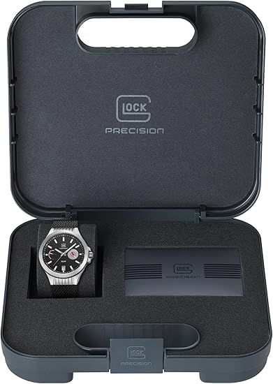 GLOCK positioniert sich im Segment hochwertiger Quarzuhren mit technischer Anmutung. Die Kombination aus Edelstahlgehäuse, verschraubtem Gehäuseboden und 10 ATM Wasserdichtigkeit signalisiert Widerstandsfähigkeit. Gleichzeitig verweist das präzise japanische Quarzwerk auf funktionale Zuverlässigkeit. Diese Verbindung aus Markenimage und technischer Ausstattung schafft Vertrauen – ein entscheidender Faktor bei der Kaufentscheidung.