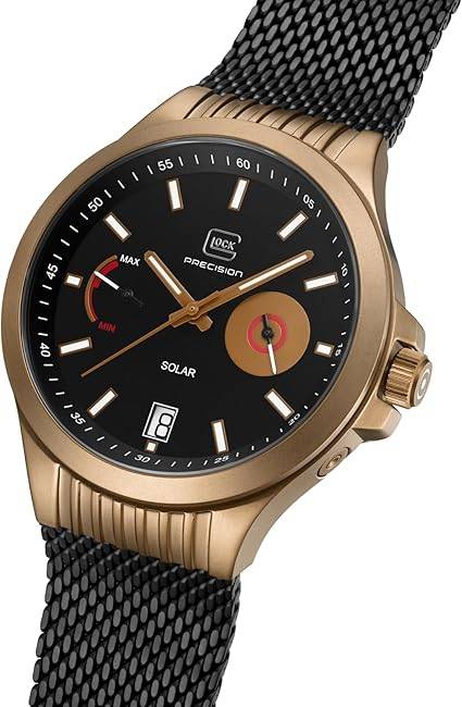 Die solarbetriebene Designer Uhr GLOCK Precision GW-19-3-22 für Herren ist mehr als ein Zeitmesser. Sie vereint innovative Solartechnologie, hohe Robustheit, exklusives Design und höchste Präzision. Für Käufer, die Wert auf Qualität, Funktion und Ästhetik legen, ist sie eine langfristige Investition, die sowohl stilistisch als auch funktional überzeugt.