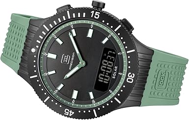 Die Glock Precision GW-40-2-24 schlägt bewusst eine Brücke zwischen klassischer Uhrmacherkunst und moderner Materialtechnologie. Tradition zeigt sich beispielsweise im analogen Zifferblattlayout mit klar strukturierten Indizes, während die digitale Anzeige zusätzliche Funktionalität liefert. Diese Hybridlösung erfüllt sowohl ästhetische als auch praktische Anforderungen. Moderne Designelemente wie das schwarze Edelstahlgehäuse, die grüne Farbgebung und die technische Oberflächenstruktur des Armbands vermitteln Innovationskraft und Individualität. Für Käufer bedeutet dies: Sie investieren nicht nur in ein Zeitmessinstrument, sondern in ein Statement-Produkt mit Wiedererkennungswert.