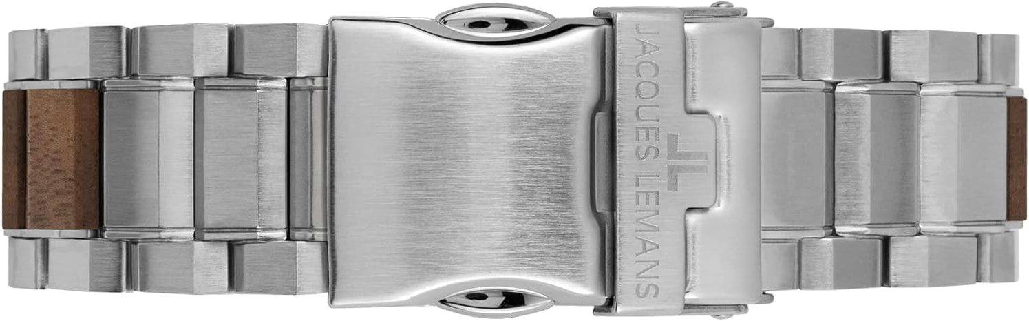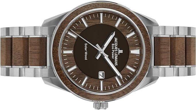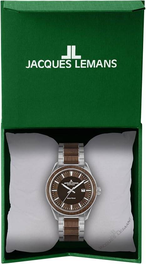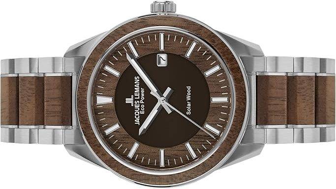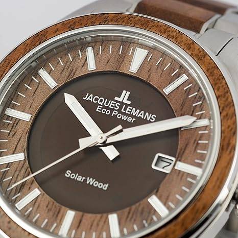 Die solarbetriebene Designer Uhr Jacques Lemans Eco Power 1-2116H für Herren steht für nachhaltige Zeitmessung, exzellente Verarbeitung, hohe technische Präzision und ein markantes, hochwertiges Design aus Edelstahl, Holz und modernem Solarwerk. Sie vereint Autarkie, klassisches Understatement, Robustheit und eleganten Stil. Sie wurde nach ökologischen Prinzipien entwickelt, bietet eine Dunkelgangreserve von rund vier Monaten, ist bis 10 ATM wasserdicht und überzeugt mit höchster Materialqualität sowie einem ergonomischen Tragegefühl. Wenn Sie eine Uhr suchen, die Umweltbewusstsein und Premium-Anspruch vereint, ist dieses Modell ein außergewöhnlich überzeugender Kandidat.
