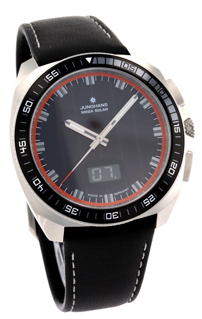 A. Positionierung der solarbetriebenen Designer Uhr Junghans 1972 Mega Solar 56/4610.00 für Herren im Luxussegment