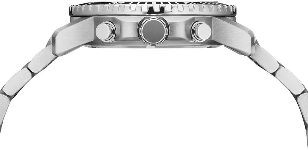 Darüber hinaus sorgt der Kontrast zwischen dem dunklen Zifferblatt und dem hellen Edelstahlarmband für optimale Ablesbarkeit. Funktion und Design gehen hier Hand in Hand – ein klares Zeichen für durchdachte Produktentwicklung.
