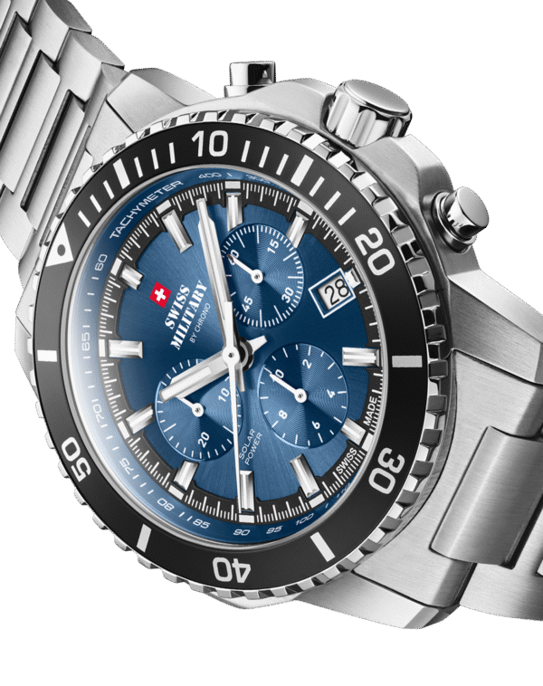 Die Swiss Military by Chrono SMS34113.02 nutzt diese Technologie, um eine zuverlässige und wartungsarme Performance sicherzustellen. Gleichzeitig ermöglicht das Chronographensystem zusätzliche Funktionen wie Zeitmessung und Stoppfunktionen.